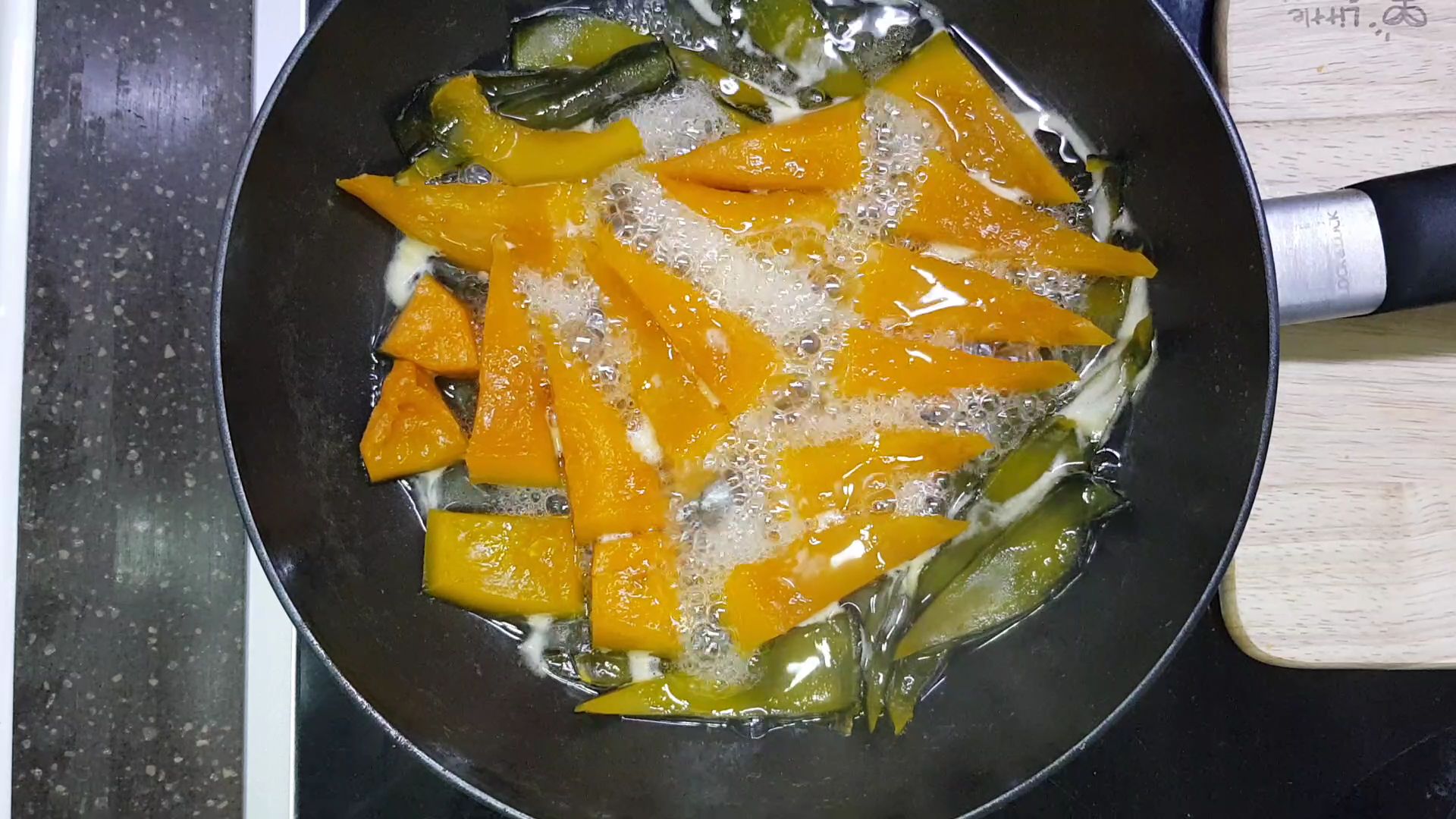 단호박에 꿀 넣고 조리면 금새 만들수 있는 반찬입니다.