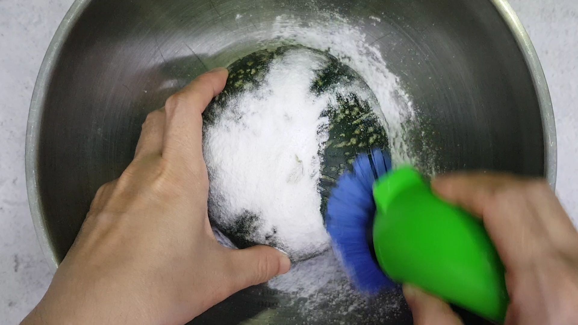 2. 솔로 베이킹소다를 단호박표면에 문지릅니다