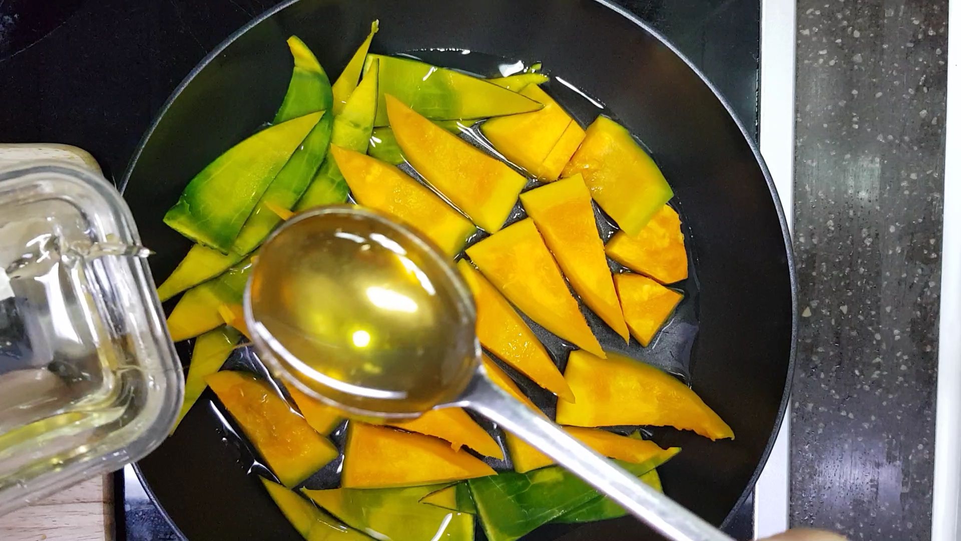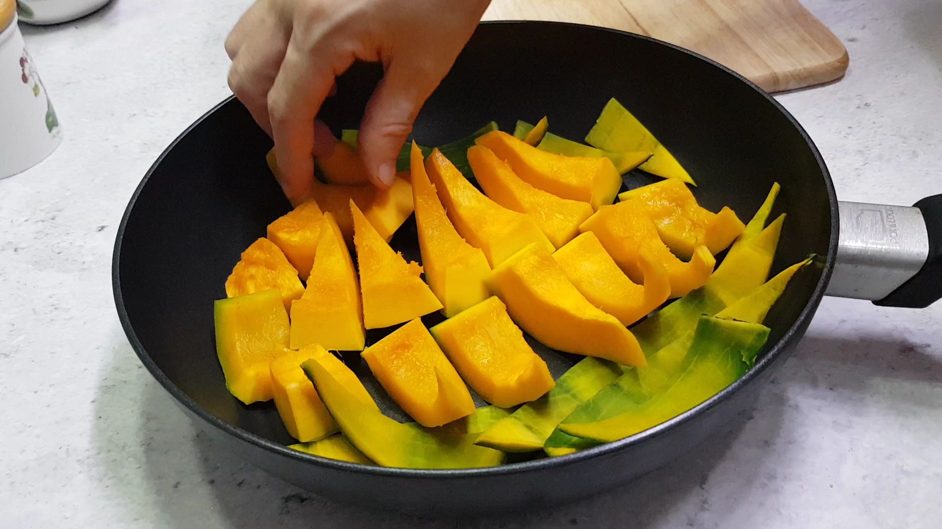 1. 먹기 좋게 썬 단호박을 후라이팬에 넣고