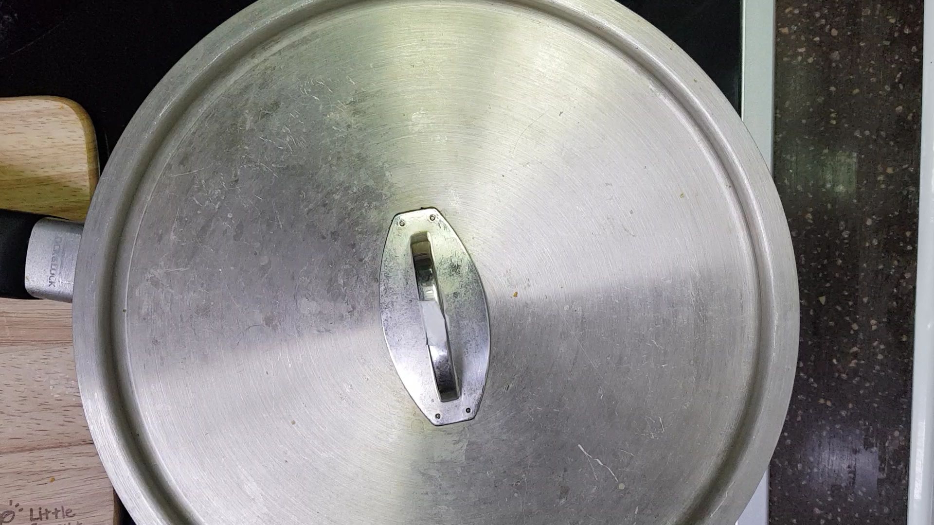 물을 넣고 뚜껑까지 닫아놔서 냄비에 물이 많이 찹니다.