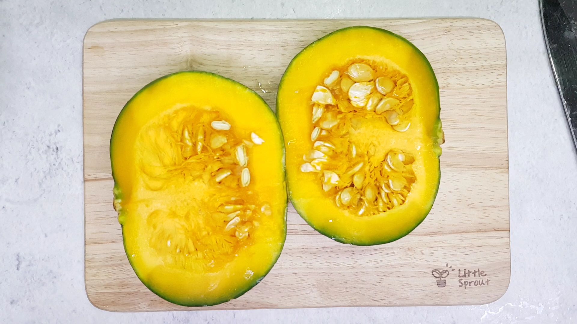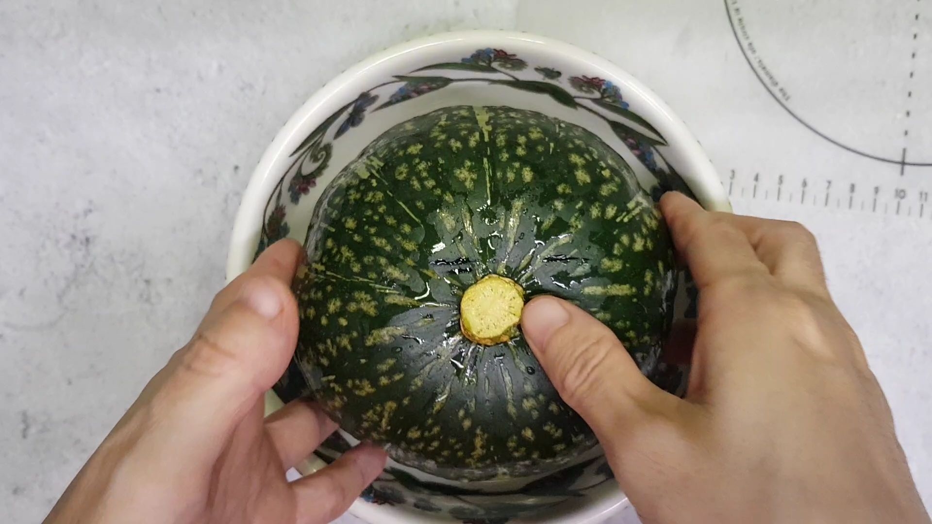 2. 깨끗이 헹군 단호박은 전자렌지에 3분 돌려줍니다.