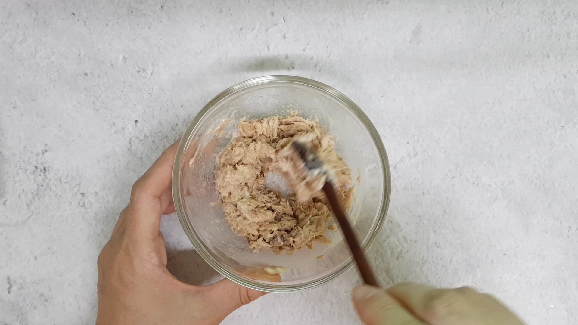 4. 기름을 뺀 참치에 마요네즈 1스푼을 넣고 섞어 둡니다.